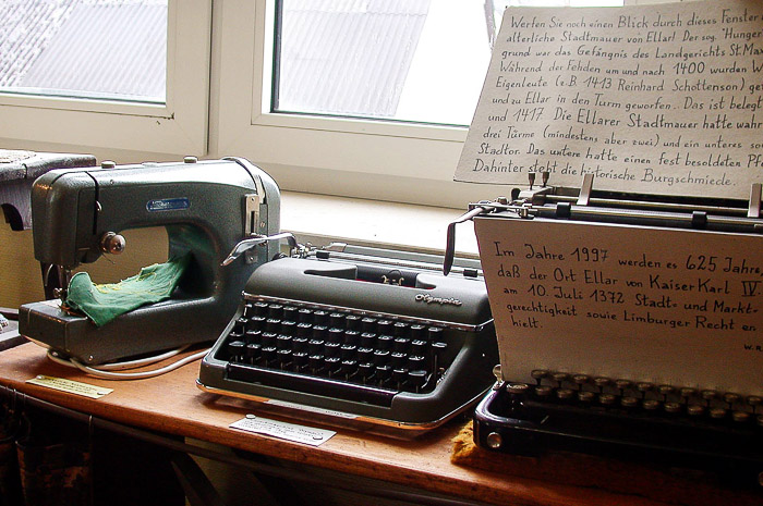 Das Heimatmuseum in Ellar trägt ab Juni 2022 den Namen "Walter Rudersdorf Haus". Es ist auf zwei Gebäude verteilt, wobei das Hauptgebäude das Ludwig-Bös-Haus ist, welches im Jahre 1860/61 erbaut wurde. In diesem Gebäude befindet sich eine umfangreiche Sammlung von regionaler Kultur, Brauchtum und Geologie, darunter Fossilien aus fast allen erdgeschichtlichen Epochen. Eines der besonderen Exponate ist eine Kopie des "Turnierenden Reiters", einer gotischen Plastik, die einen Ritter auf einem Pferd zeigt und vermutlich eine Phantasiefigur ist. Eine weitere Kopie einer Urne aus der Zeit um 1000 v. Chr., die in Fussingen gefunden wurde (das Original befindet sich im Museum Wiesbaden), ist ebenfalls ausgestellt. Des Weiteren besitzt das Museum eine umfangreiche Sammlung von Flugblättern, die während des Zweiten Weltkrieges von den Alliierten über Deutschland abgeworfen wurden. Die Geologische Sammlung wurde vom Geologischen Landesamt Nordrhein-Westfalen als "Überregional bedeutend" eingestuft. Das zweite Gebäude des Museums ist die "Alte Schmied" oder auch "Burgschmiede" genannt. Hier befindet sich eine funktionstüchtige historische Schmiede sowie eine Sammlung von historischen Geräten aus der Landwirtschaft und dem Handwerk, die über 300 Jahre alt sind. (Bilder © grafikdesignklein.de)