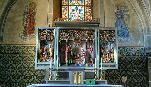 Die Anlage besteht aus der alten und neuen Pfarrkirche, massiven Basaltstützmauern, einem Pfarrhaus, Überresten des alten Kirchspielfriedhofs und einer Sammlung alter Lindenbäume. Die gesamte Anlage bildet eine heilige Einheit und wurde 1985 in das Denkmalbuch des Landes Hessen eingetragen. (Bilder © grafikdesignklein.de)